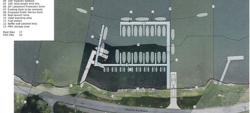 It is our understanding that this is a private dock for members of Discovery Land. However, the description of the variance is for a proposed public marina that extends 159 feet from the shoreline vs 100 feet allowable.